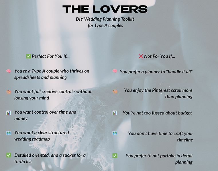🖤 Couples who want to be in control of the end to end plan and not hand it all over