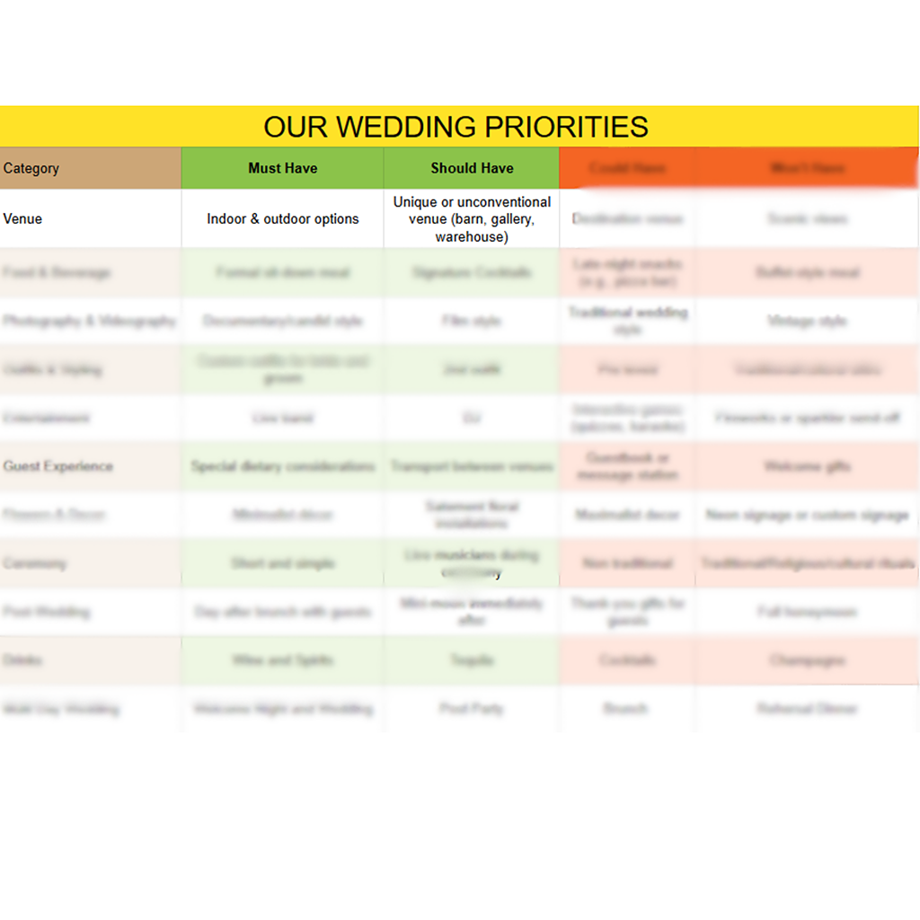 STEP 1: Prioritise what actually matters to you, your partner and family members involved in the planning process